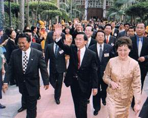陳水扁水扁先生今天上午以軍禮歡迎帛琉共和國雷蒙傑索總統暨夫人,隨之並於總統府內進行晤談,下午則陪同雷蒙傑索總統伉儷及訪華團成員參訪台北市立景美女中,瞭解該校之教學成果並觀賞學生社團精彩的表演。