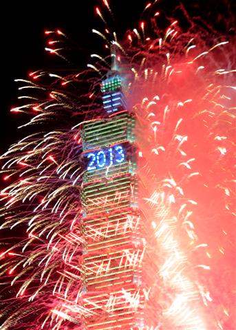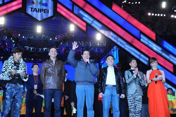 馬英九總統晚間前往臺北市政府前市民廣場出席「臺北最high新年城—2013跨年晚會」時表示,他非常高興參加今晚的跨年晚會,並與民眾共同觀賞精彩的世界級煙火秀。