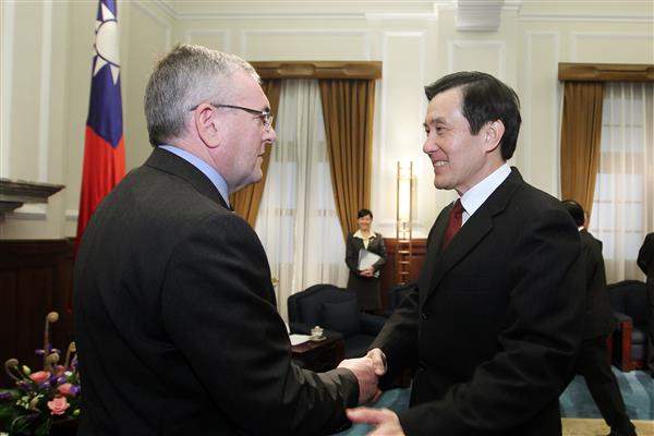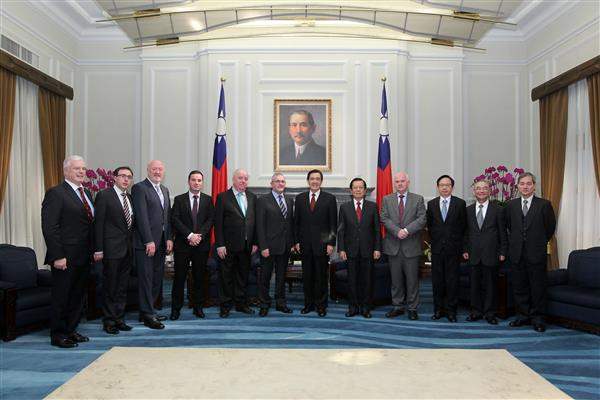 馬英九總統上午接見「愛爾蘭國會友臺小組」訪華團主席馬基尼士(John McGuinness)等一行,除代表我政府與人民歡迎訪賓來臺,並希望能與該國儘速簽訂「避免雙重課稅」協定,以增進雙邊投資。