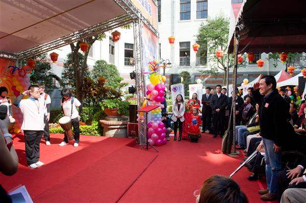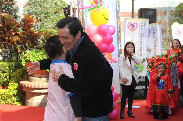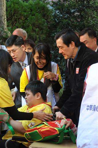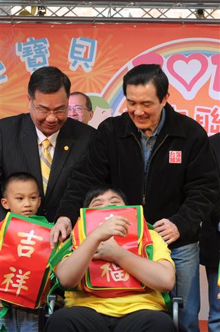 馬英九總統下午出席「中華身心障礙者職業技藝協會」在總統府舉辦的「天使寶貝 關懷無限」歲末聯歡童樂會,與300多名身心障礙、寄養家庭、新住民、原住民及育幼機構的孩子同樂,以具體行動傳達政府關心及愛護弱勢孩童的心意。