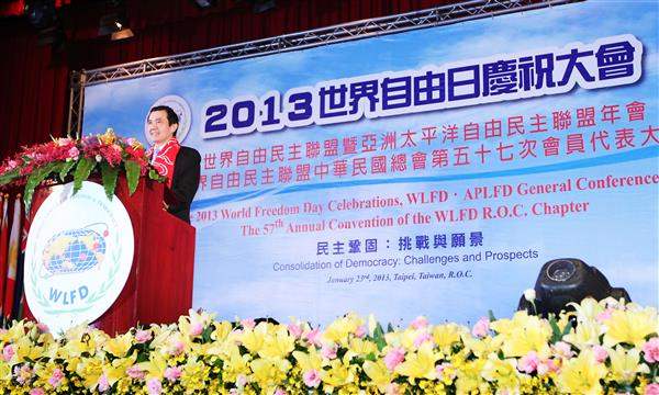 總統出席「2013年世界自由日慶祝大會、世盟中華民國總會第57次會員代表大會暨世亞盟年會」