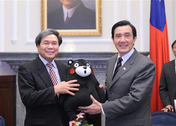 馬英九總統晚間接見日本熊本縣知事蒲島郁夫一行,除說明臺日兩國在各項交流的進展,並盼兩國友誼與合作關係在既有基礎上持續進展。