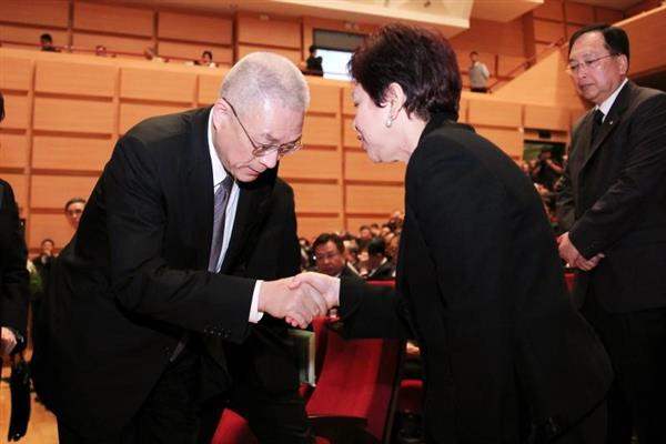 今天出席是項活動者還包括前副總統蕭萬長、經濟部長施顏祥及東吳大學副校長趙維良等人。