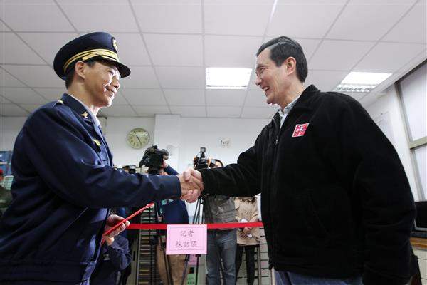 今天是農曆除夕,馬英九總統下午先後前往臺北市警察局中正第一分局介壽路派出所、大安區清潔隊臺大分隊與中正區清潔隊、行政院衛生署新北市雙和醫院、新北市消防局中和分隊及第七大隊與興隆寓所轄區興隆派出所等單位訪視,慰勉警消、醫護及清潔留守人員,對渠等堅守工作崗位、為民服務的辛勞與貢獻,表達肯定與感謝之意。