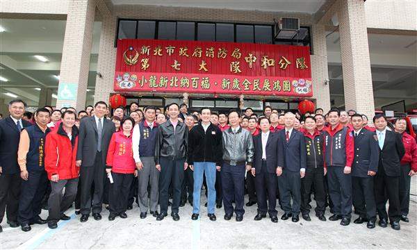 隨後,總統前往新北市消防局中和分隊及第七大隊。總統致詞時表示,10年前蘆洲大火導致重大傷亡時,他深感痛心,開始思考如何避免因巷弄狹窄導致火災救援不及之問題,決定透過購置小型消防車、防撞設施,強力拆除消防空間之違建及貫徹機車退出騎樓等措施加以改善;目前公共場所之火災發生率已大為減少,多數火災則是發生於民宅或私人場所,此部分仍須國人提高防火意識,包括夜市等處所亦需消防單位多加關注。