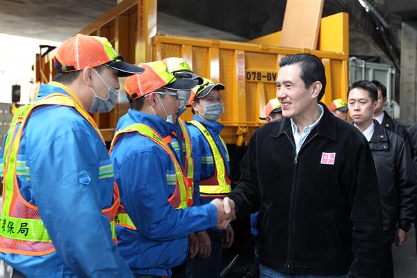 在慰勉臺北市政府環保局基層留守同仁時,針對行政院環保署公布「清淨家園全民運動計畫」101年度地方政府環境清潔考核結果,臺北市獲得直轄市唯一「特優」之殊榮,成為全國最乾淨城市,總統特別表達鼓勵與賀意。