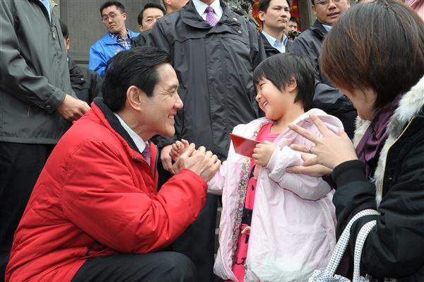總統也與現場民眾進行有獎問答,並發送福袋,祝福大家新春愉快。包括臺北市長郝龍斌、總統府副秘書長熊光華及行天宮董事長葉文堂均陪同出席是項活動。
