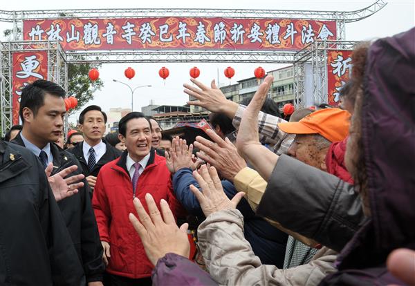 隨後,總統前往新北市林口區竹林山觀音寺參拜祈福,受到現場民眾夾道熱情歡迎。總統於參拜後表示,國內景氣已由去年11月轉好,今年一定會更好,也希望國人共同打拚。同時總統亦肯定新北市政府積極致力於市政建設及發展,尤其他昨(9)日訪視新北市消防隊中和分隊及第七大隊,發現該市災害防救整備工作可謂全臺數一數二,表現相當優異。