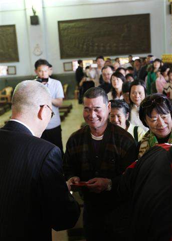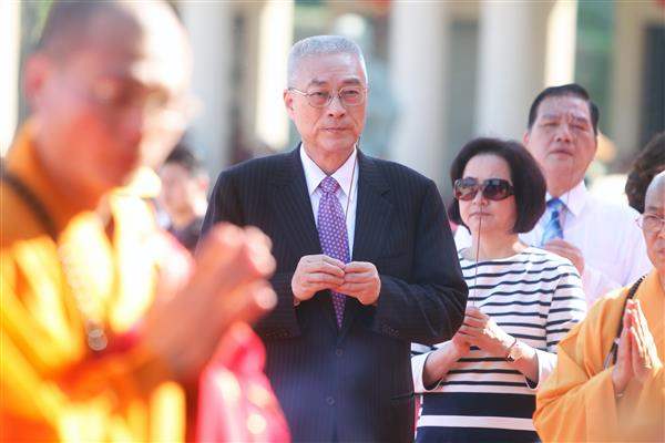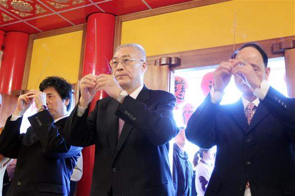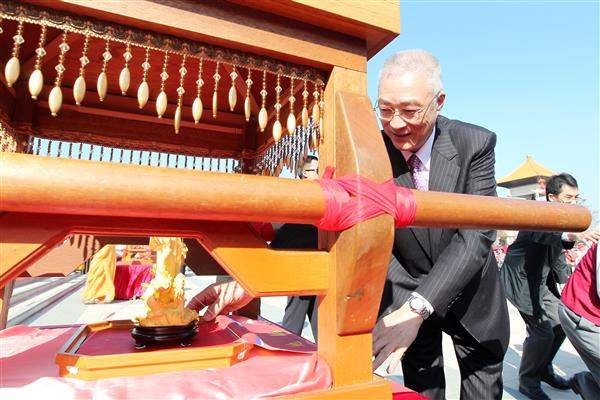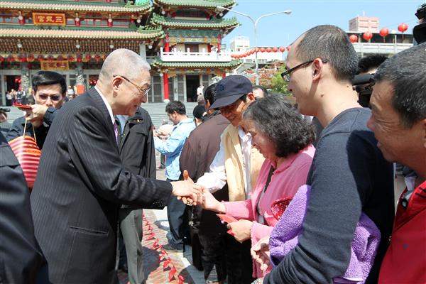 今天是農曆大年初三,吳敦義副總統伉儷一早南下高雄市,前往鳳山「紫竹林精舍」、一貫道「發一崇德高雄道場」、「三鳳宮」、「元亨寺」、「千佛山般若寺」及「行德宮」等寺廟祈福參拜,並岀席佛光山第四次地宮珍寶入宮法會。