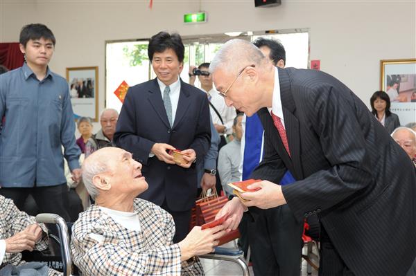 今天是農曆大年初六,吳敦義副總統一早南下高雄市,前往「私立高雄仁愛之家」探視住院長輩,致送春節福袋與加菜金,隨後至鳳山區「龍山寺」、前金區「萬興宮」及屏東縣鹽埔鄉「慈天宮」等寺廟祈福參拜,稍晚並訪視「瑪家農場永久屋禮納里部落」。