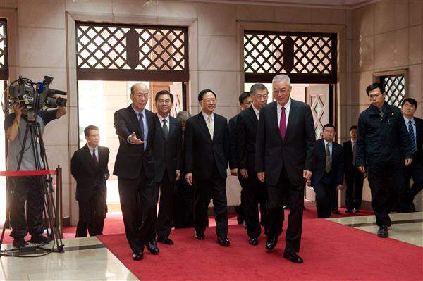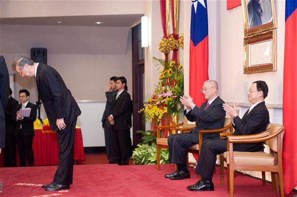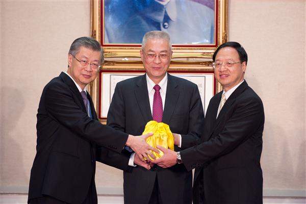 吳敦義副總統上午以監交人身分主持行政院卸、新任院長交接典禮,會中,副總統代表總統,對卸任的陳冲院長任內優秀的施政表現及辛勞,表達高度肯定與感謝;對於新上任的江宜樺院長,亦預祝新的政府團隊施政順利,為國家與人民爭取最大的利益與福祉。
