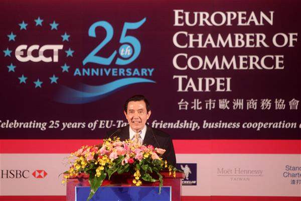馬英九總統中午出席「臺北市歐洲商務協會」成立25週年慶祝酒會,除感謝歐商對臺灣經濟發展的貢獻,並期盼進一步深化臺歐各項交流與合作關係。