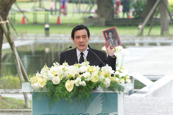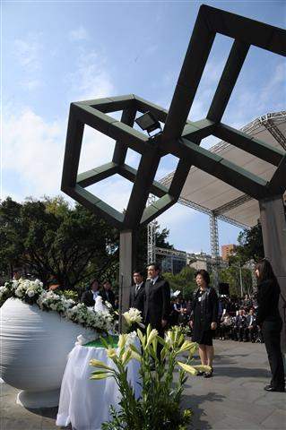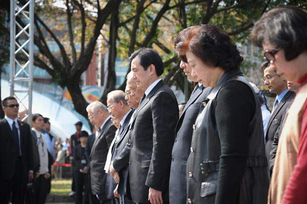下午,總統轉往「二二八和平公園」,出席「臺北市二二八事件66週年追悼會」,臺北市長郝龍斌亦陪同出席是項活動。