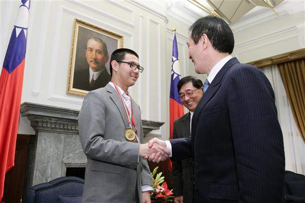 「2012年第九屆國際國中科學奧林匹亞競賽」我國得獎同學:張賴和、楊智翔、楊哲寧、賴冠瑋、蔡昆霖及許乃偉同學等一行由教育部次長陳益興陪同,前來總統府晉見總統,總統府副秘書長熊光華也在座。