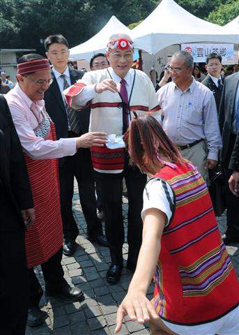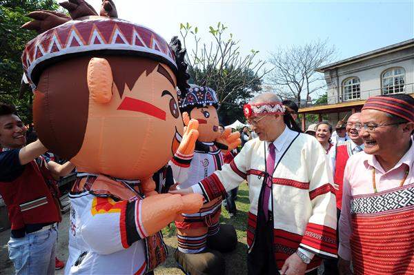 吳敦義副總統下午前往華山1914文化創意產業園區出席「臺灣原民園-全國原住民農特展產銷活動」,透過觀賞傳統歌舞表演、品嚐小米酒及體驗擣麻糬等活動,展現政府對原住民文化的重視。