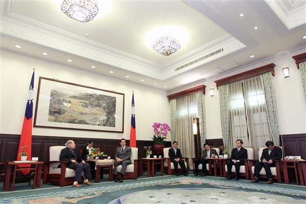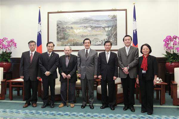 訪賓由行政院國家科學委員會主任委員朱敬一、中央研究院院長翁啟惠等人陪同,前來總統府晉見總統,國家安全會議諮詢委員鍾堅也在座。