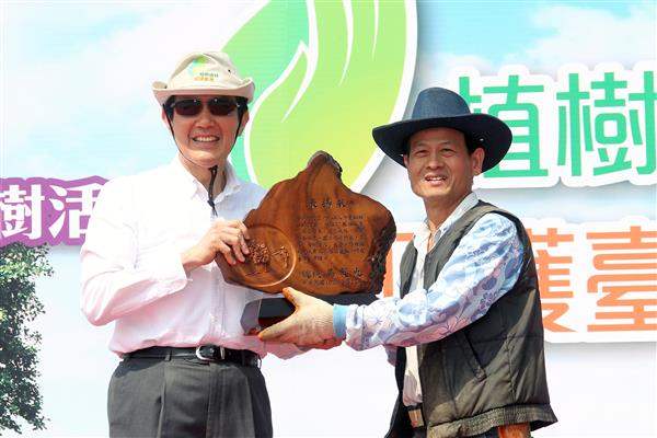「植樹達人」賴倍元今年受邀擔任植樹月的「森情大使」,總統也特別頒發「植樹楷模獎牌」,表揚渠「植樹造林、呵護臺灣」的精神。總統表示,賴倍元27年來共栽植超過27萬棵樹木,感動近百家中小企業主一起投入種樹的行動;尤其賴倍元強調不施肥,讓樹木順其自然生長,也不砍伐、不牟利,確保環境永續發展的胸懷,吸引越來越多人加入他的行列;期盼國人效法賴倍元,推廣並實踐種樹的觀念,一起「種樹愛臺灣」。