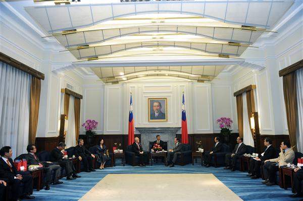 訪賓一行下午前來總統府晉見總統,總統府秘書長楊進添、國家安全會議副秘書長鄧振中及外交部次長石定也在座。