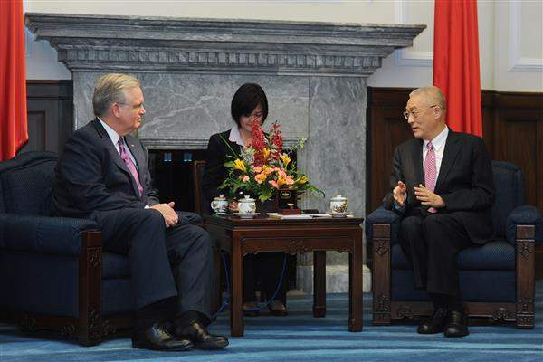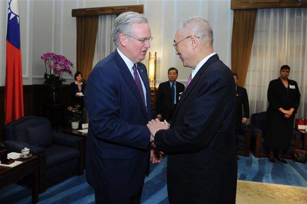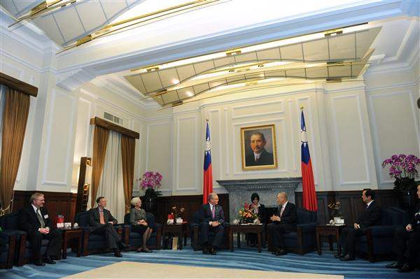 訪賓一行由「美國在臺協會」臺北辦事處副處長酈英傑(Brent Christensen)陪同,前來總統府拜會副總統,總統府秘書長楊進添及外交部次長石定也在座。