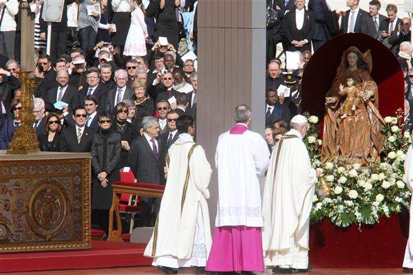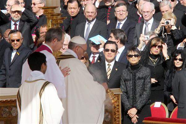 馬英九總統伉儷「慶誼專案」在義大利羅馬時間3月19日(星期二)上午出席教宗方濟(Pope Francis)就職大典彌撒,儀式於9時30分起在聖伯多祿廣場(Piazza San Pietro)舉行,與來自130餘國的慶賀代表團及世界各地的教徒齊聚會場見證此一歷史時刻,儀式過程莊嚴而隆重。