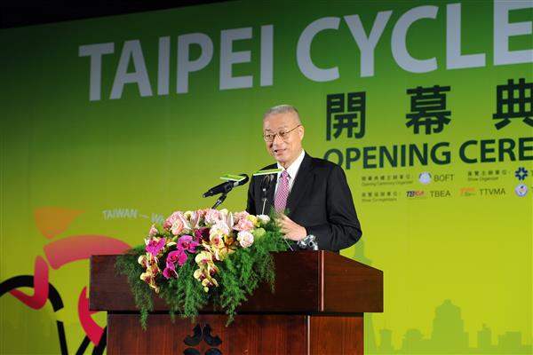 吳敦義副總統上午前往臺北世貿南港展覽館出席2013「臺北國際自行車展覽會」開幕典禮,除頒發「創新設計金質獎」給獲獎企業代表,並期勉國人繼續努力,打造臺灣成為低碳綠能環境。