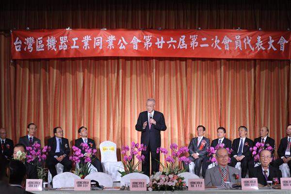 吳敦義副總統下午前往臺中市,出席「臺灣區機器工業同業公會」第26屆第2次會員代表大會,並期盼產官學研各界凝聚力量,札根機械工業基礎技術,並協助該產業全面升級、提升國際競爭力。