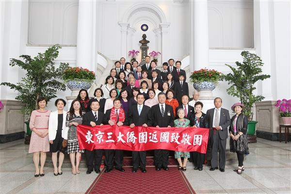 馬英九總統上午接見日本東京三大僑團返國致敬團,除代表我政府與人民歡迎訪賓來訪,並期盼僑胞持續支持我政府政策,進一步深化臺日合作關係。