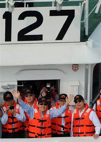 總統致詞時表示,他本人與許多官員係首度搭乘公務船出海,此次約兩小時的航程雖然並未超越我國12海浬領海,但已足以讓人體會海巡弟兄平日執行護漁任務之認真與辛勞。