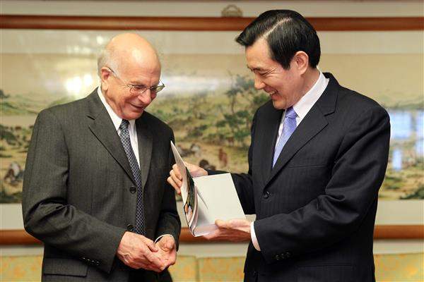 馬英九總統上午前往臺北圓山飯店出席由「遠見‧天下文化事業群」所舉辦的「理性思考與公共決策論壇」,並與2002年諾貝爾經濟學獎得主康納曼(Daniel Kahneman)教授及現場嘉賓針對公共決策如何制訂之議題進行意見交換。