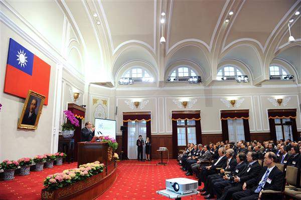 總統府上午舉行總統府月會,馬英九總統親臨主持,並聽取「瑞士洛桑國際管理學院」(IMD)院長杜道明(Dominique V. Turpin)以「面對全球挑戰 提升臺灣競爭力」為題所做的專題演講。