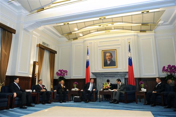 總統向訪賓說明,目前我已分別與中國大陸簽署「兩岸經濟協議」(ECFA)及與日本簽署「臺日投資保障協議」,並重啟臺美「貿易暨投資架構協定」(TIFA)會議談判,未來亦將積極參與區域經濟整合,期能儘快加入「跨太平洋夥伴協定」(TPP)以及「區域全面經濟夥伴關係」(RCEP),讓臺灣在這波區域經濟整合中扮演重要角色。
