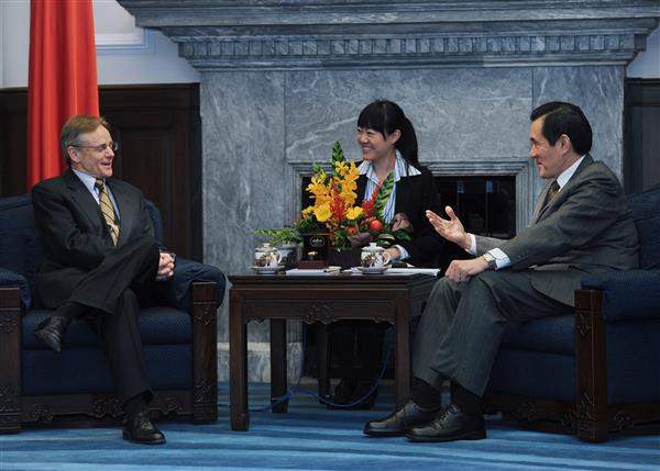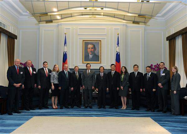 訪賓一行8人由美國智庫「國家亞洲研究局」會長艾令思率領,前來總統府晉見總統,總統府秘書長楊進添、國家安全會議副秘書長楊永明及外交部次長石定也在座。