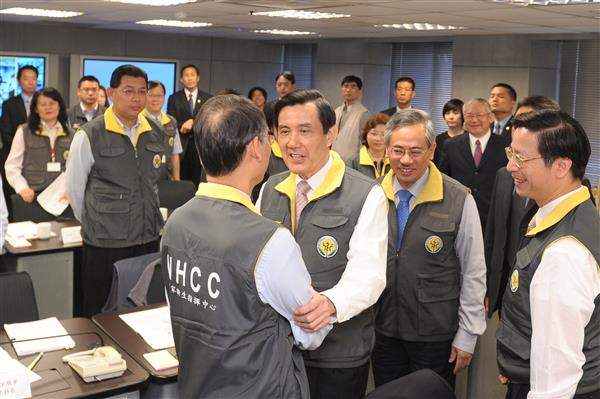 馬英九總統上午前往「國家衛生指揮中心」,視察「H7N9流感中央流行疫情指揮中心」各項防疫工作,除肯定該中心及相關部會已做好嚴密防疫措施,並針對朝鮮半島緊張情勢,說明政府立場及因應作為,請國人安心。