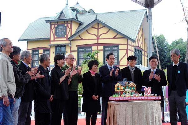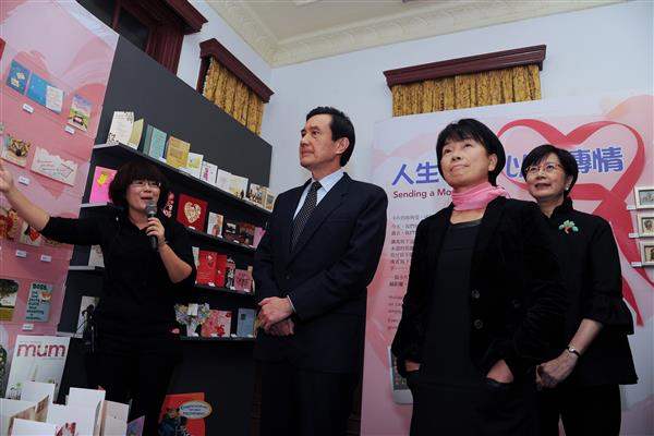 隨後,總統也與現場嘉賓一同唱生日快樂歌,慶祝「臺北故事館」成立10周年,並由文化部長龍應台、臺北市長郝龍斌及陳國慈總監等人陪同入館參觀,聽取導覽人員解說該館目前所展出的「賀卡的故事」特展。