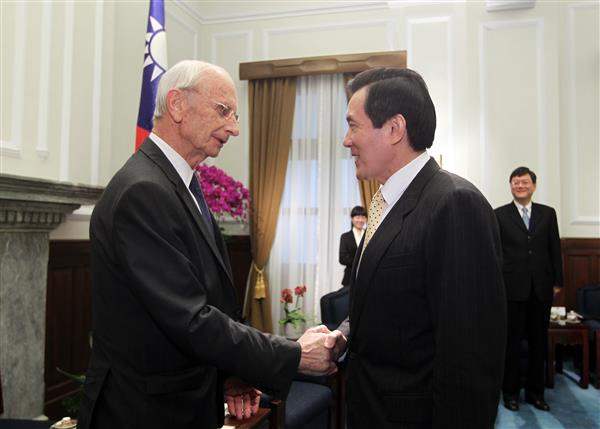 馬英九總統上午接見被譽為「歐洲行銷之父」的多明尼克‧夏代爾(Dominique Xardel)博士,除歡迎訪賓一行來訪,更盼渠此行分享豐富的品牌行銷推廣經驗,讓臺灣品牌在國際上發光發熱。