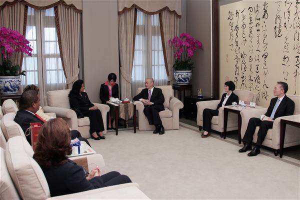 吳敦義副總統上午接見多明尼加參議院副議長黎莎朵(Cristina Lizardo Mézquita)等一行,除代表政府與人民誠摯歡迎訪賓訪華,並深盼持續增進兩國合作與交流機會。