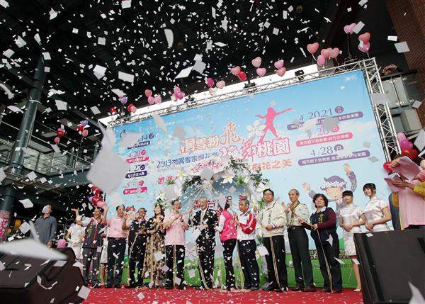 副總統並與行政院客家委員會副主任委員鍾萬梅及桃園縣長吳志揚等人一同敲響「桐花和平鐘」,揭開「客家桐花祭」序幕。