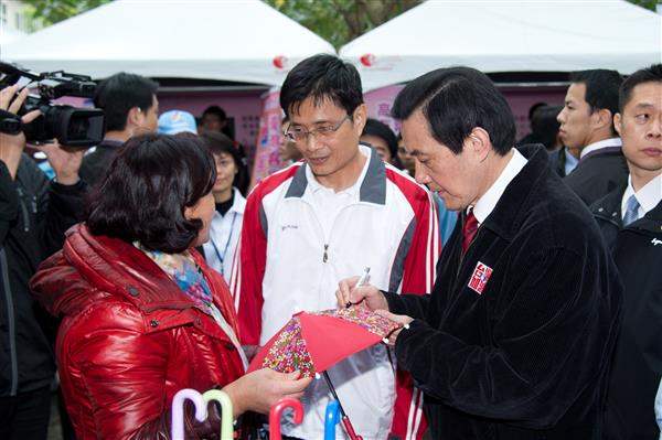 隨後,總統與現場民眾進行有獎問答,並在行政院客委會主委黃玉振、總統府副秘書長熊光華及苗栗縣長劉政鴻等人陪同下,步行至客家特色商品展售區,瞭解地方特色商品產業的發展情形。