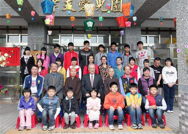 稍早,副總統訪視宜蘭縣冬山鄉「幸夫愛兒園」,對該院創辦人達觀法師多年來協助政府照顧社會弱勢的付出與努力表達肯定與感佩之意,並期許院童們日後能回饋社會,對國家有所貢獻。