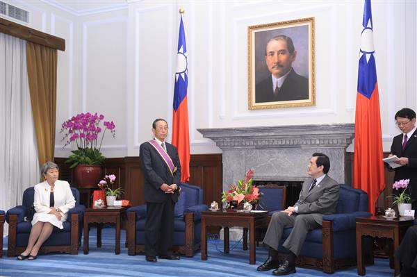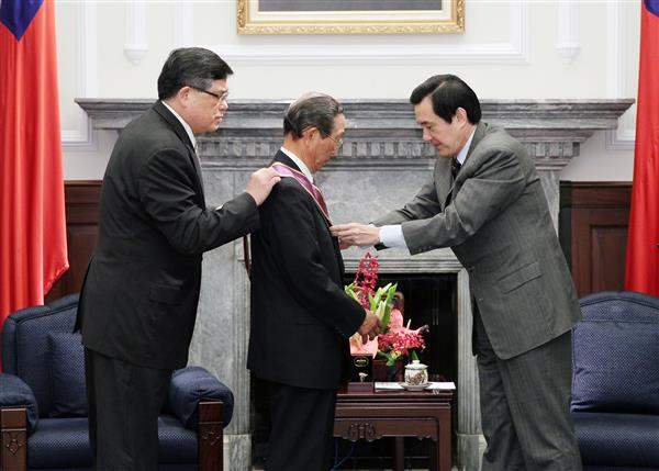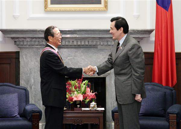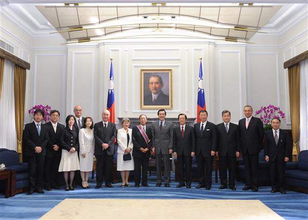 馬英九總統上午在總統府頒授「日本交流協會」前理事長畠中篤(Hatakenaka Atsushi)「大綬景星勳章」,以表彰渠促進臺、日關係發展之傑出貢獻。畠中篤前理事長夫人、「日本交流協會」代表樽井澄夫伉儷,以及我總統府秘書長楊進添、國家安全會議秘書長袁健生、外交部次長石定及前駐日大使馮寄台等人均在場觀禮。