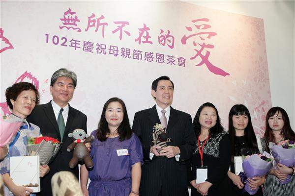 馬英九總統下午出席內政部舉辦的「無所不在的愛—慶祝102年母親節感恩茶會」,對天下所有母親無私的奉獻,表達高度推崇與感謝之意。