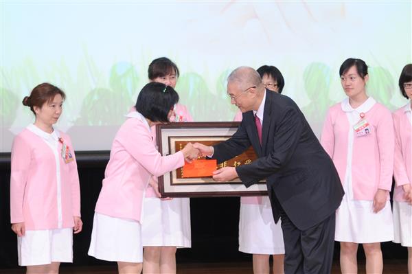 副總統表示,此屆評審作業公平嚴謹,今年獲「特殊貢獻獎」者包括侯淑英、莊寶玉及陳美珠等3人,獲「績優奉獻獎」者包括朱碧櫻、林新茹、范惠珍、孫佩勤、陳綉惠、湯梅芬及劉秀美等7人;獲獎者均以細心、耐心及愛心,分別在工作崗位中不辭辛勞,為病患提供身心靈及社會層面的照護,為醫護界典範,令人敬佩。