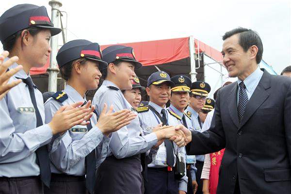馬英九總統上午前往臺中商港43號碼頭視導「海安七號演習暨海洋文化活動」,校閱海上分列式、船艇性能操演及海上應變綜合演練,並對我海巡同仁守護海域疆土的辛勞表達肯定與嘉勉。
