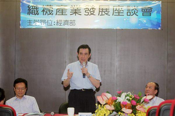 總統與織襪業者座談時,首先聽取經濟部工業局「織襪產業現況輔導成效與未來展望」簡報。會中針對業者所提有關赴大陸參展之補助、協助「臺灣製造」品牌行銷、提高外勞核配比率、利用匯率政策提振經濟發展及編列預算補貼出口等建議,經濟部長張家祝及所屬單位代表也逐一予以說明。