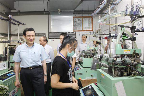 關心我國織襪產業發展現況,馬英九總統下午分別訪視彰化縣勝鴻工業「襪仔王觀光工廠」、鼎悅織造及織襪產業快速設計打樣中心,對我織襪業者創新與轉型的積極作為深表肯定。稍後,總統並與業者座談,聽取產業界建言,並說明政府因應貿易自由化的理念與作為。