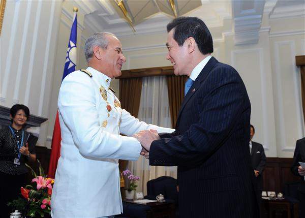 訪賓一行由多國駐華大使阿布爾格格(Rafaela Alburquerque)陪同,前來總統府晉見總統,總統府秘書長楊進添、國家安全會議秘書長袁健生、國防部長高華柱及參謀總長嚴明等人也在座。