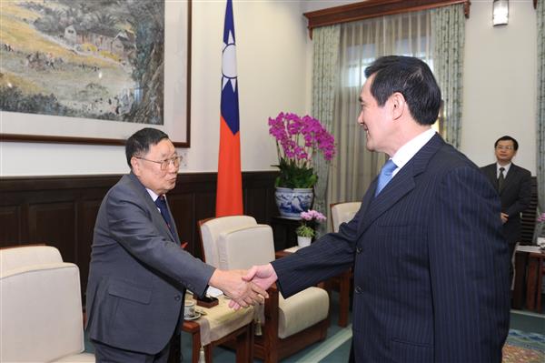馬英九總統上午接見「宜蘭人文基金會」董事長陳錫南伉儷等一行,並與陳董事長及「國際電機電子工程學會」院士陳謨星教授針對我國能源問題交換意見。