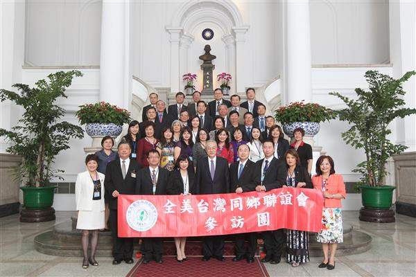吳敦義副總統上午接見「全美臺灣同鄉聯誼會」返國致敬團一行,代表政府與人民歡迎訪賓回國參訪,除肯定與會者堅定支持政府,並期勉渠等繼續為團結、服務僑社及傳承中華文化等奉獻心力。