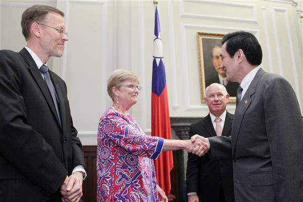 訪賓一行由「美國在臺協會」(AIT)副處長酈英傑(Brent Christensen)陪同,前來總統府晉見總統,國家安全會議副秘書長楊永明及外交部次長石定也在座。