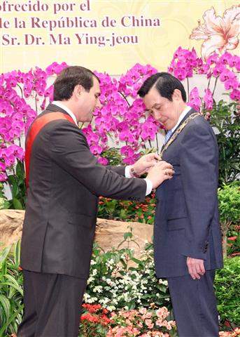 總統於致詞時表示,他很高興代表我政府致贈象徵最高崇隆的「采玉大勳章」予遠道來訪之佛朗哥總統,同時也感到十分榮幸獲得渠致贈「索拉諾羅培斯元帥懋績勳章」,此係兩國深厚情誼之具體展現,期盼雙方在既有良好合作基礎上,繼續加強發展彼此關係。